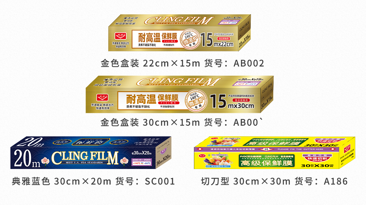 我司食品包裝自粘PVDC保鮮膜符合歐盟安全與環保雙標準的食品專用保鮮膜,采用美國FDA標準生產,PVDC保鮮膜無味、無毒、透明、耐酸、耐堿、高阻隔熱(140℃),超低溫耐冷(-60℃)。是一種多功能、多用途環保型保險包裝薄膜。